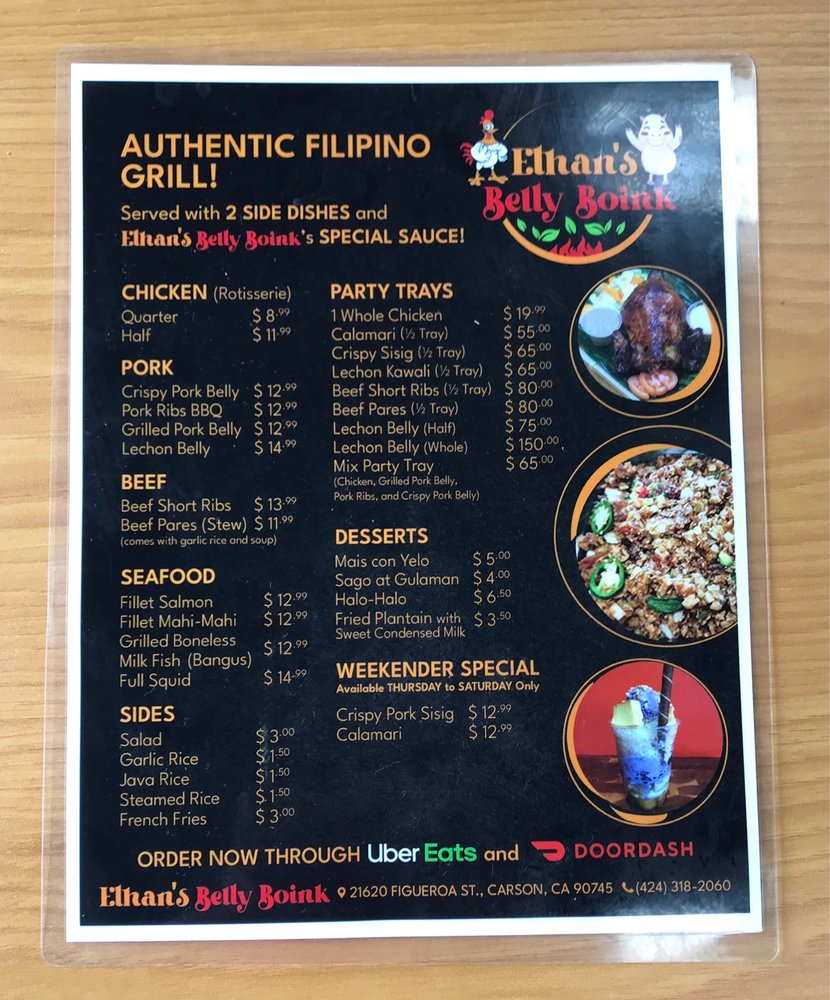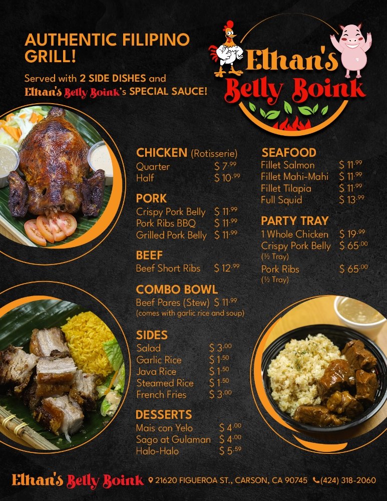 Welcome to Ethan's Belly Boink, a culinary gem nestled in Carson, California. Located at 21620 S Figueroa St, this delightful eatery specializes in vibrant flavors that transport your palate straight to the heart of the Philippines.